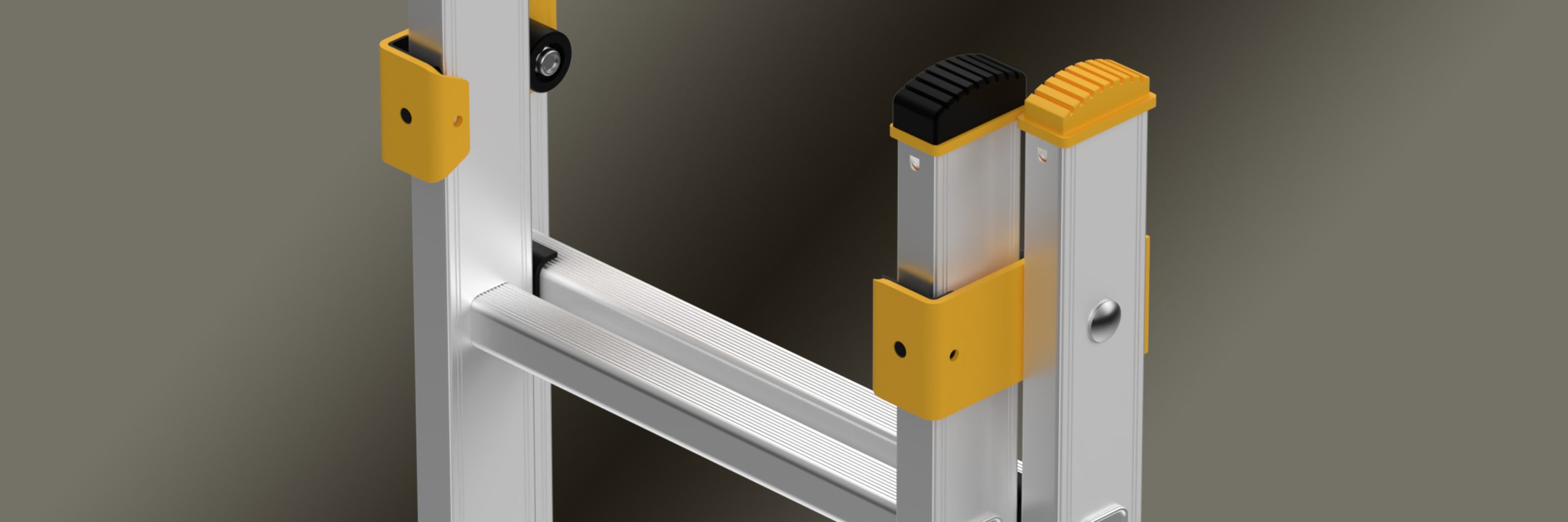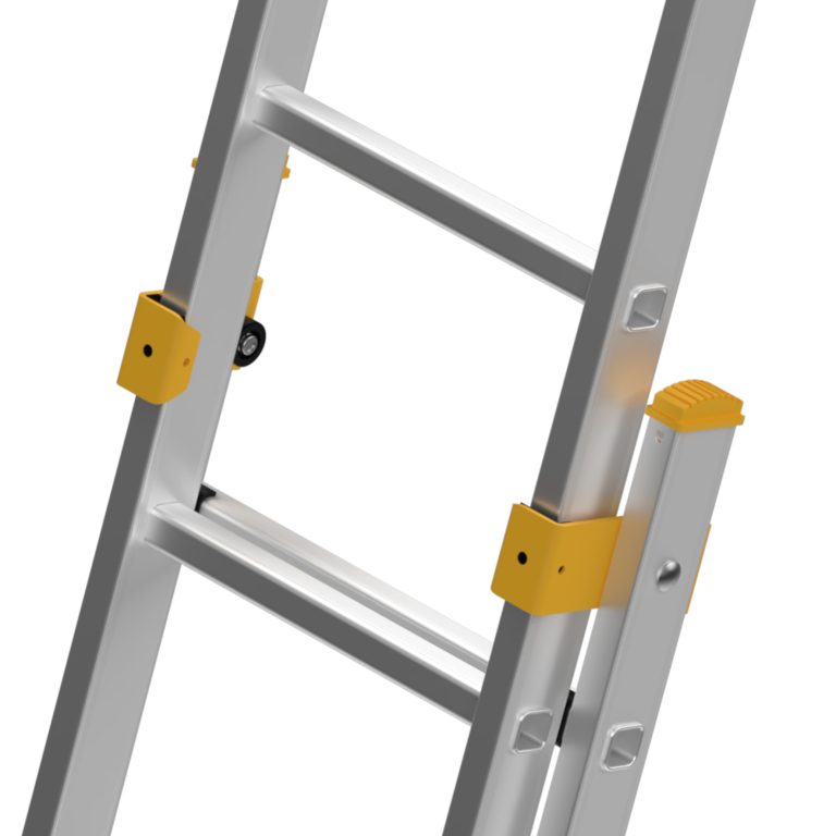 - Stabile Führungsbeschläge mit verschleißarmen Kunststoff-Gleitlagern gewährleisten einen sicheren und dauerhaft verdrehsteifen Halt der Leitersegmente